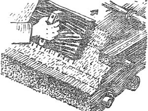 - Для уплотнения матов, их выравнивания и «расчесывания» применяются гребенка-щетка и лопатки биты. Покрытие должно получиться достаточно плотным, так как от этого качества зависит, насколько защищенным будет покрытие от возгорания, какими тепло— и гидроизоляционными способностями станет обладать, как долго прослужит крыша в целом.