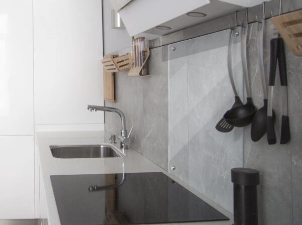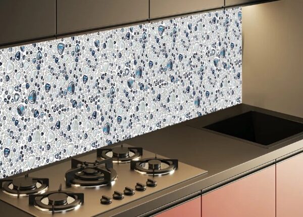 - защита стен: защищает стены от брызг, пятен, жира и влаги, что помогает поддерживать чистоту и порядок на кухне и облегчает уборку;
