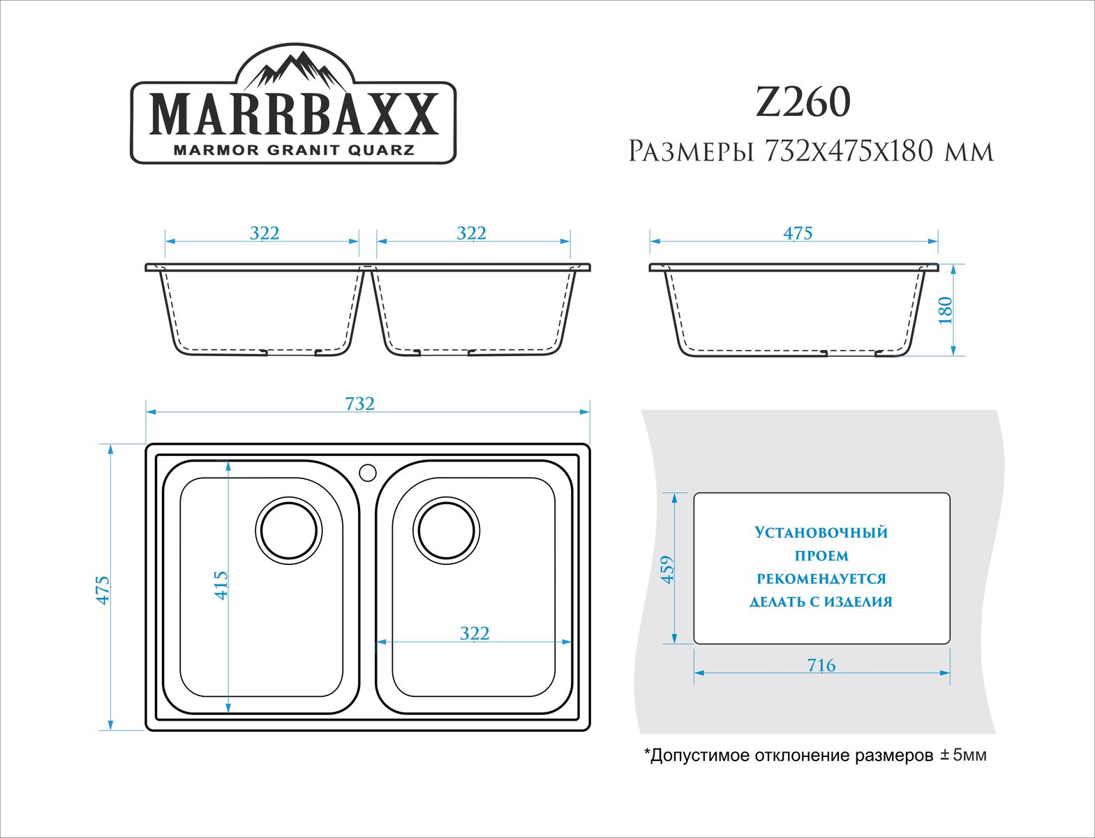 Мойка для кухни Marrbaxx Скай Z260 из искусственного камня с двумя чашами