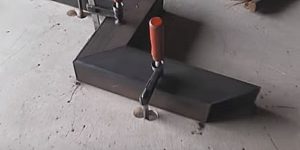 Из инструментов для работы над конструкцией необходимо подготовить: сварочный аппарат, «болгарку» (угло-шлифовальную машинку) и круги для резки металла и обработки сварных швов, шуруповерт, электрическую дрель и сверла по металлу и дереву, электрический лобзик или ручную циркулярку. Хорошо, если есть просторный рабочий стол или площадка с идеально ровной поверхностью, позволяющей выполнять сварочные работы. Для фиксации деталей перед сваркой потребуются струбцины.