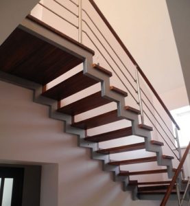 Маршевая лестница может состоять из одного или нескольких пролетов, которые, в свою очередь, соединяются между собой или горизонтально установленной переходной площадкой, или участком с забежными ступенями. Оба варианта пользуются примерно равной популярностью, и конструкция выбирается в зависимости от площади помещения, в котором планируется установить лестницу.