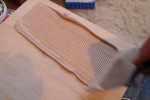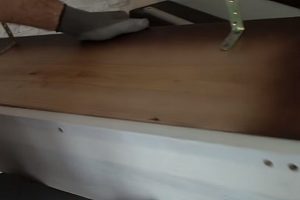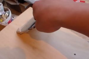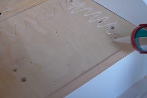 Деревянную панель плотно прижимают к основанию и, для того чтобы клей равномерно распределился между деталями, слегка смещают несколько раз влево-вправо.