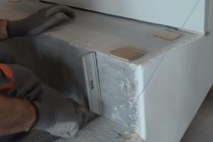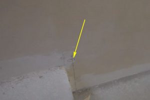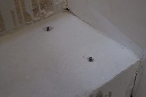Пробку с помощью пробойника желательно просадить вперед – чтобы она гарантированно прошла через 20-миллиметровую панель подступенка и вошла в канал, высверленный в бетоне.
