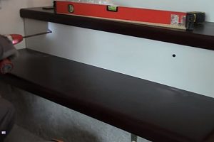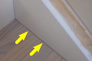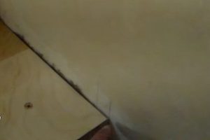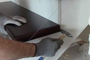 Наверняка, почувствуется, что клей хорошо разошелся, и ступень плотно прилегла к фанерному основанию. Итогом такого выравнивания должно стать то, что ступень плотно, без просвета, прижмется к фальшь-тетиве, закреплённой на стене. Это ее «штатное положение» то есть то, к чему мы и стремились.