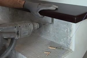 Наконец, в этом разделе статьи будет рассказано, а точнее – показано, как еще можно смонтировать деревянную массивную отделку бетонной лестницы. В данном случае в качестве надёжного крепления деревянных ступеней, помимо клеевого соединения, применён так называемый химический анкер.