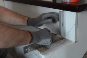 Теперь необходимо наметить отверстия, через которые подступенок будет крепиться к бетонному основанию.
