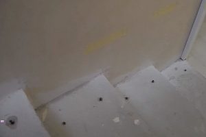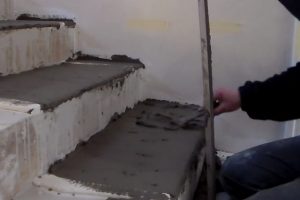 Следующим шагом следует оценить качество бетонной поверхности ступеней, насколько она отличается от горизонтального уровня, какова «разбежка» высоты ступеней от расчётной. Дело в том, что при заливке бетонной лестницы крайне сложно обеспечить идеальную «геометрию» создаваемой конструкции – так или иначе, погрешности будут. Это связано со многими факторами, в том числе и с усадкой раствора в процессе застывания, тем более, в опалубке столь сложной формы. Существуют различные способы минимизировать эти отклонения, но идеала достигнуть все равно — практически нереально.