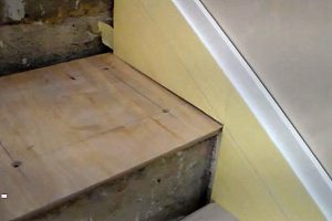 Фанеровка бетонныхступеней перед отделкой считается наилучшим способом. Но зачастую хозяева пытаются сэкономить – ведь и качественная влагостойкая фанера может стоить немало. Кроме того, появляется желание избежать довольно ответственной задачи выравнивания поверхности ступеней строительным раствором.