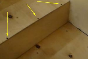Если подступенок несколько выходит за плоскость тетивы, его можно подровнять, слегка простучав молотком через деревянную прокладку.