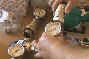 В представленном ниже примере мастер применяет металлические комплектующие, и что характерно – широко использует сопряжения деталей накидными гайками-«американками», то есть обходится практически без «запаковки» соединений – достаточно применения прокладок. Безусловно, очень удобный подход, правда, не особо дешевый. Но зато, наряду с надежностью соединений, обеспечивается возможность демонтажа любого элемента создаваемого узла, например, для его замены.