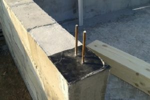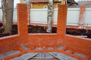 Перед началом кладки комплекса, на фундамент под первый ряд кирпичей настилается гидроизоляционный материал — рубероид.
