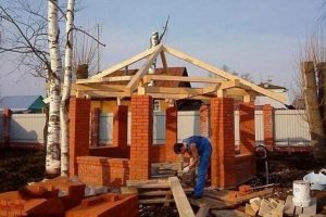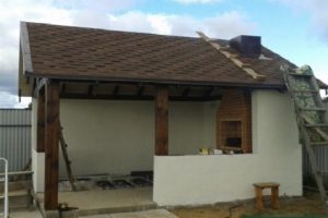 Монтаж крыши в кирпичной и деревянной беседке производится по одному принципу и включает несколько основных операций.