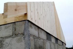 - На колонны по всему периметру укладываются перекрывающие горизонтальные деревянные детали (обвязка), изготавливаемые чаще всего из доски толщиной в 50 и шириной в 150 мм. Их крепление осуществляется с помощью анкеров или металлических уголков. Эта обвязка одновременно чаще всего становится и мауэрлатом для стропильных ног.