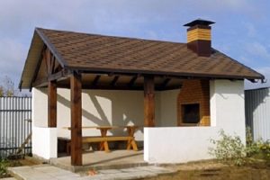 - Беседки, в план которых входит печь для барбекю или мангал, необходимо устанавливать таким образом, чтобы дым при приготовлении блюд не попадал в окна дома. Здесь имеет смысл проследить, каково направление преобладающего ветра, конечно, с учётом имеющейся застройки и насаждений.