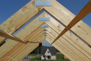 Немаловажным фактором при выборе пиломатериалов для стропильной системы является влажность дерева — она должна быть не выше 20%. В связи с тем, что проверить этот параметр древесины невозможно без специального прибора, лучше подстраховаться и приобрести ее заранее, чтобы материал успел приобрести нужную влажность. Для этого брус и доски необходимо поместить в проветриваемое помещение или под навес, выложив их штабелем с созданием между ними вентиляционных зазоров.
