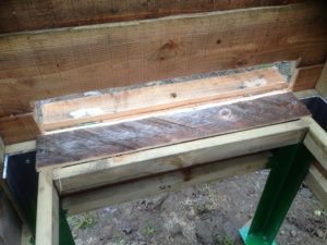 Если подкрышник используется в качестве односкатной крыши, то его закрепляют на стенке фасадной части улья с помощью петель, а на задней стенке он должен плотно фиксироваться к магазинной секции или к корпусу.