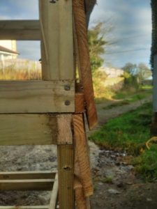 Можно еще, кстати, добавить, что внешнюю облицовку можно производить как до установки улья на постоянное место, так и уже после вкапывания подставок в грунт.
