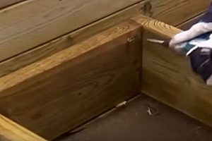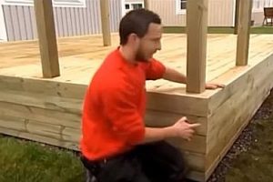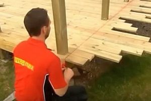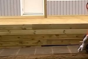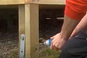Если основание под подиумом не ровное, то сначала к обшивке веранды закрепляется на один саморез та сторона ступени, которая расположена выше.