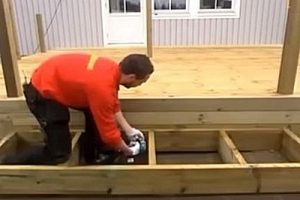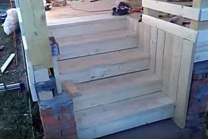Излишек высоты бруска впоследствии срезается. После можно настилать половицы и на степень — по тому же принципу, как и на полу веранды.