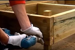 Далее, с внутренней стороны горизонтальные бруски обвязки размечаются для дальнейшего закрепления на них вертикальных досок, своеобразных балясин, шириной в 100÷120 мм.