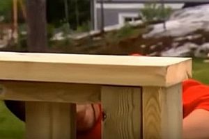 Для этого по внутренней стороне его внешних углов закрепляются бруски-ножки сечением 50×50 мм. Сначала прикручивается более высокая ножка, затем короткая. Их фиксация производится с помощью саморезов.