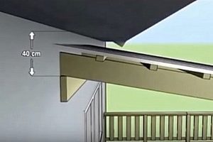 Горизонтальная опорная доска для обустройства козырька крепится на расстоянии в 400 мм от верха стены.