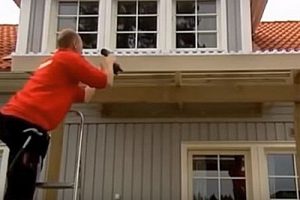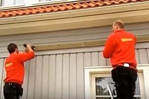 Далее, приподнимается центральная часть короба, выравнивается по уровню и также закрепляется на досках обшивки.