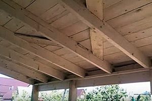 Края стропил, формирующие свес козырька, несколько корректируются — с них под углом срезается нижняя часть, как показано на иллюстрации.
