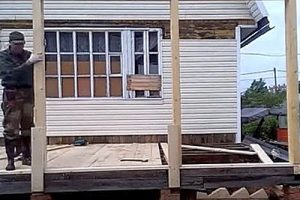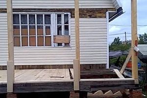 Деревянная веранда на старом столбчатом фундаменте