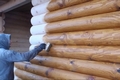 - Для шиферной кровли, цементной «шубы» на стене, стен из бревен или оцилиндрованного бруса, для других поверхностей с выраженными неровностями, глубоким рельефом — ≥450 г/м².