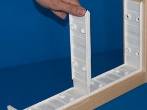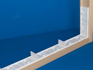 Основу системы составляют направляющие профили, выполненные из прочного пластика. Для придания конструкции необходимой устойчивости с внешним механическим нагрузкам направляющие закрепляются на стену, полы и потолок.