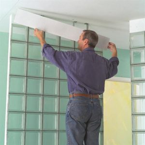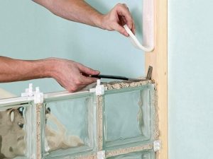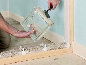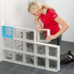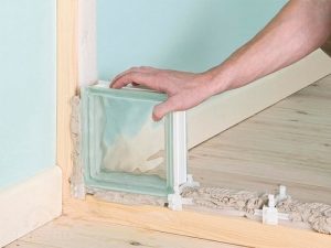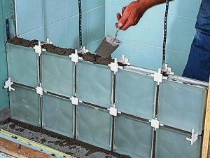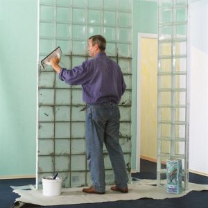 Еще необходимо подобрать затирку, близкую по цвету к блокам, для светлых и прозрачных стеклоблоков подойдет белый или темный, контрастный вариант затирки.