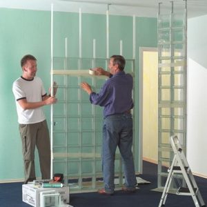 Существует и несколько вариантов каркасной технологии установки перегородок из стеклоблоков. В данном разделе публикации будет рассмотрен один из таких способов, наиболее удобный в монтаже и отличающийся надежностью креплений — это итальянская система «Vetroclick».