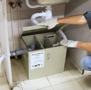 Избавиться от специфического неприятного запаха в помещении общественного питания можно путем установки автоматического, компактного жироуловителя. Размещают его непосредственно под мойкой. Модификация многих моделей предусматривает вывод стоков в отдельный приемник. Обслуживание таких устройств не требует много и времени — достаточно периодически очищать патрубки от крупных частиц, а для удаления осадка использовать любое моющее средство.